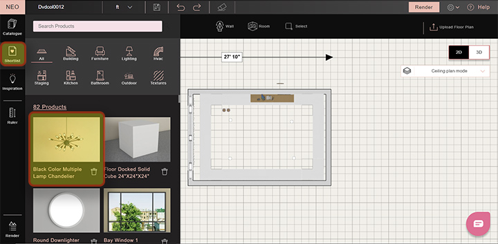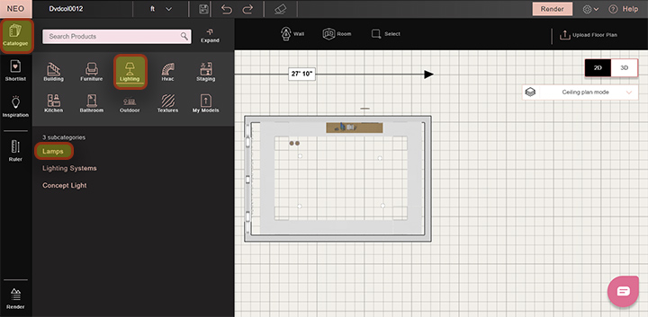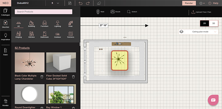 Neo is the best room planning tool and you can follow the below steps to learn how to add light fixtures in a default ceiling.